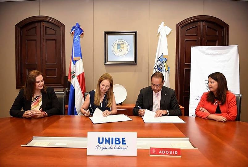 En el acto de firma, que tuvo lugar en el Salón Peña Batlle de UNIBE, participaron por Adosid, Isabel Martínez de Ruso, secretaria; Karenny Fulcar, segunda vicepresidenta; Rosario Vieites, miembro de la Junta Directa, y Olety de la Cruz, directora ejecutiva.